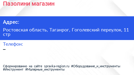 Пазолини, магазин по адресу Ростовская область, Таганрог, Гоголевский переулок, 11 стр в дальнейшем Организация, размещена в следующих категориях: