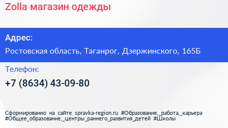Zolla, магазин одежды по адресу Ростовская область, Таганрог, Дзержинского, 165Б в дальнейшем Организация, размещена в следующих категориях: