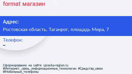format, магазин по адресу Ростовская область, Таганрог, площадь Мира, 7 в дальнейшем Организация, размещена в следующих категориях: