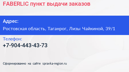 FABERLIC, пункт выдачи заказов по адресу Ростовская область, Таганрог, Лизы Чайкиной, 39/1 в дальнейшем Организация, размещена в следующих категориях: