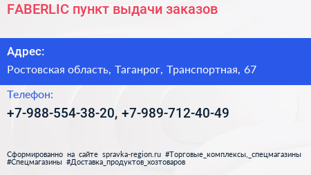 FABERLIC, пункт выдачи заказов по адресу Ростовская область, Таганрог, Транспортная, 67 в дальнейшем Организация, размещена в следующих категориях: