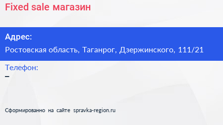 Fixed sale, магазин по адресу Ростовская область, Таганрог, Дзержинского, 111/21 в дальнейшем Организация, размещена в следующих категориях: