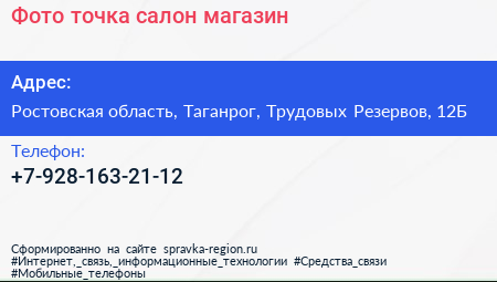 Фото точка, салон-магазин по адресу Ростовская область, Таганрог, Трудовых Резервов, 12Б в дальнейшем Организация, размещена в следующих категориях: