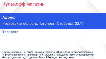 Кулькофф, магазин по адресу Ростовская область, Таганрог, Свободы, 32/4 в дальнейшем Организация, размещена в следующих категориях: