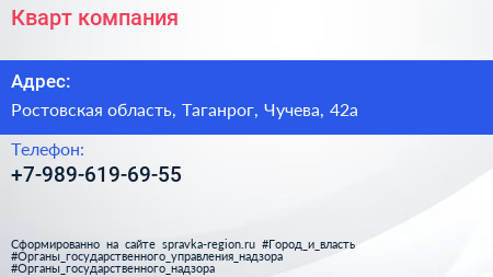 Кварт, компания по адресу Ростовская область, Таганрог, Чучева, 42а в дальнейшем Организация, размещена в следующих категориях: