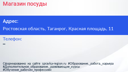 Магазин посуды по адресу Ростовская область, Таганрог, Красная площадь, 11 в дальнейшем Организация, размещена в следующих категориях: