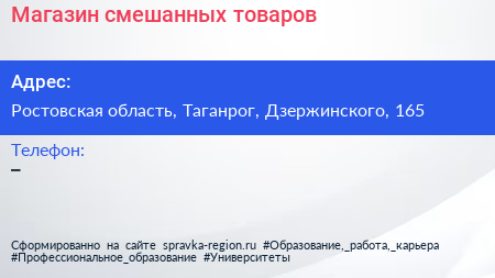 Магазин смешанных товаров по адресу Ростовская область, Таганрог, Дзержинского, 165 в дальнейшем Организация, размещена в следующих категориях: