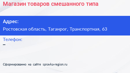Магазин товаров смешанного типа по адресу Ростовская область, Таганрог, Транспортная, 63 в дальнейшем Организация, размещена в следующих категориях:
