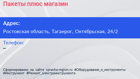 Пакеты плюс, магазин по адресу Ростовская область, Таганрог, Октябрьская, 24/2 в дальнейшем Организация, размещена в следующих категориях: