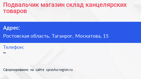 Подвальчик, магазин-склад канцелярских товаров по адресу Ростовская область, Таганрог, Москатова, 15 в дальнейшем Организация, размещена в следующих категориях: