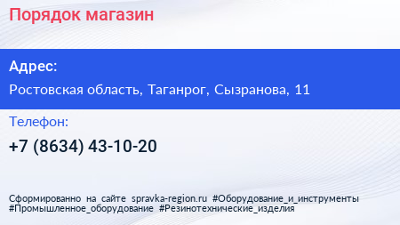 Порядок, магазин по адресу Ростовская область, Таганрог, Сызранова, 11 в дальнейшем Организация, размещена в следующих категориях: