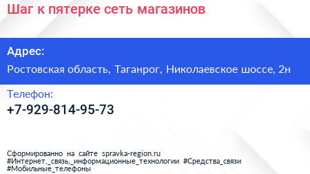 Шаг к пятерке, сеть магазинов по адресу Ростовская область, Таганрог, Николаевское шоссе, 2н в дальнейшем Организация, размещена в следующих категориях: