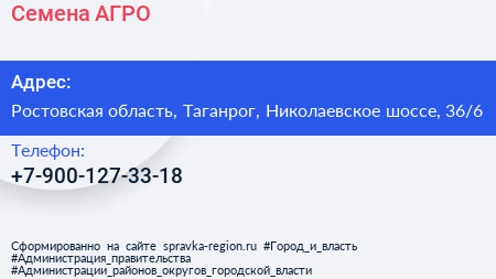 Семена АГРО по адресу Ростовская область, Таганрог, Николаевское шоссе, 36/6 в дальнейшем Организация, размещена в следующих категориях: