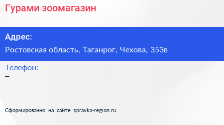 Гурами, зоомагазин по адресу Ростовская область, Таганрог, Чехова, 353в в дальнейшем Организация, размещена в следующих категориях: