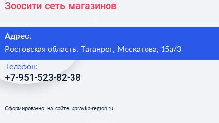 Зоосити, сеть магазинов по адресу Ростовская область, Таганрог, Москатова, 15а/3 в дальнейшем Организация, размещена в следующих категориях: