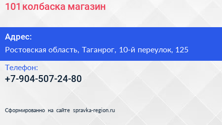 101 колбаска, магазин по адресу Ростовская область, Таганрог, 10-й переулок, 125 в дальнейшем Организация, размещена в следующих категориях: