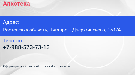 Алкотека по адресу Ростовская область, Таганрог, Дзержинского, 161/4 в дальнейшем Организация, размещена в следующих категориях: