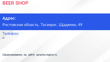 BEER SHOP по адресу Ростовская область, Таганрог, Щаденко, 49 в дальнейшем Организация, размещена в следующих категориях: