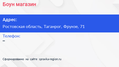 Боун, магазин по адресу Ростовская область, Таганрог, Фрунзе, 71 в дальнейшем Организация, размещена в следующих категориях: