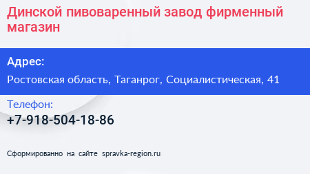 Динской пивоваренный завод, фирменный магазин по адресу Ростовская область, Таганрог, Социалистическая, 41 в дальнейшем Организация, размещена в следующих категориях: