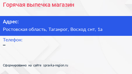 Горячая выпечка, магазин по адресу Ростовская область, Таганрог, Восход снт, 1а в дальнейшем Организация, размещена в следующих категориях: