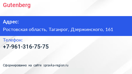 Gutenberg по адресу Ростовская область, Таганрог, Дзержинского, 161 в дальнейшем Организация, размещена в следующих категориях: