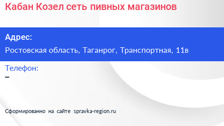 Кабан & Козел, сеть пивных магазинов по адресу Ростовская область, Таганрог, Транспортная, 11в в дальнейшем Организация, размещена в следующих категориях: