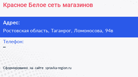 Красное & Белое, сеть магазинов по адресу Ростовская область, Таганрог, Ломоносова, 94в в дальнейшем Организация, размещена в следующих категориях: