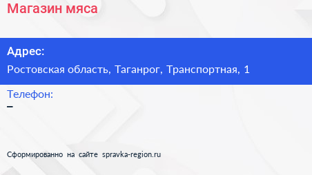 Магазин мяса по адресу Ростовская область, Таганрог, Транспортная, 1 в дальнейшем Организация, размещена в следующих категориях: