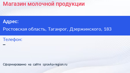 Магазин молочной продукции по адресу Ростовская область, Таганрог, Дзержинского, 183 в дальнейшем Организация, размещена в следующих категориях: