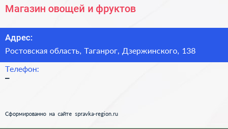Магазин овощей и фруктов по адресу Ростовская область, Таганрог, Дзержинского, 138 в дальнейшем Организация, размещена в следующих категориях: