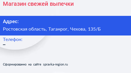 Магазин свежей выпечки по адресу Ростовская область, Таганрог, Чехова, 135/Б в дальнейшем Организация, размещена в следующих категориях:
