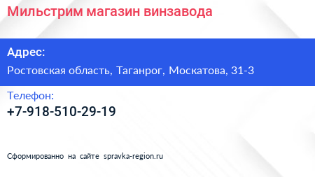 Мильстрим, магазин винзавода по адресу Ростовская область, Таганрог, Москатова, 31-3 в дальнейшем Организация, размещена в следующих категориях: