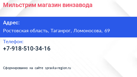 Мильстрим, магазин винзавода по адресу Ростовская область, Таганрог, Ломоносова, 69 в дальнейшем Организация, размещена в следующих категориях: