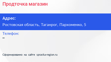 Продточка, магазин по адресу Ростовская область, Таганрог, Пархоменко, 5 в дальнейшем Организация, размещена в следующих категориях: