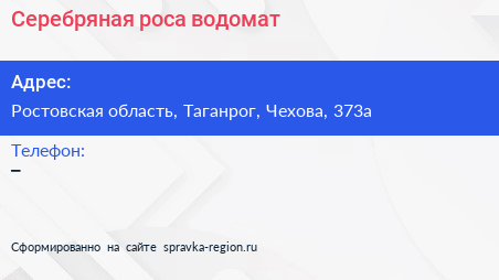 Серебряная роса, водомат по адресу Ростовская область, Таганрог, Чехова, 373а в дальнейшем Организация, размещена в следующих категориях:
