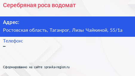 Серебряная роса, водомат по адресу Ростовская область, Таганрог, Лизы Чайкиной, 55/1а в дальнейшем Организация, размещена в следующих категориях: