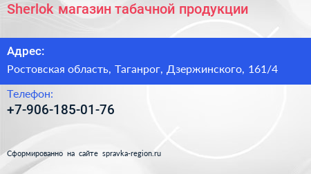 Sherlok, магазин табачной продукции по адресу Ростовская область, Таганрог, Дзержинского, 161/4 в дальнейшем Организация, размещена в следующих категориях: