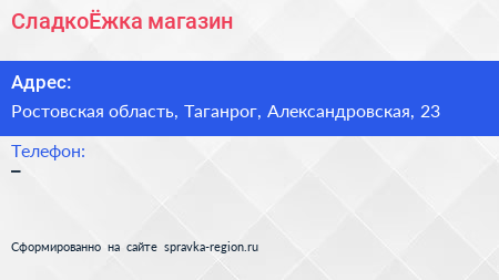 СладкоЁжка, магазин по адресу Ростовская область, Таганрог, Александровская, 23 в дальнейшем Организация, размещена в следующих категориях: