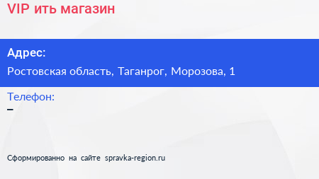 VIP`ить, магазин по адресу Ростовская область, Таганрог, Морозова, 1 в дальнейшем Организация, размещена в следующих категориях:
