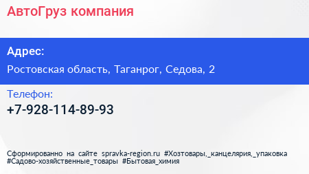 АвтоГруз, компания по адресу Ростовская область, Таганрог, Седова, 2 в дальнейшем Организация, размещена в следующих категориях: