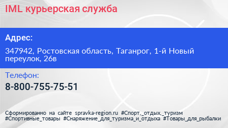 IML, курьерская служба по адресу 347942, Ростовская область, Таганрог, 1-й Новый переулок, 26в в дальнейшем Организация, размещена в следующих категориях: