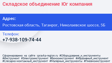 Складское объединение Юг, компания по адресу Ростовская область, Таганрог, Николаевское шоссе, 5Б в дальнейшем Организация, размещена в следующих категориях: