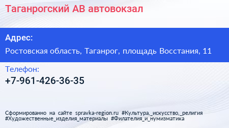 Таганрогский АВ, автовокзал по адресу Ростовская область, Таганрог, площадь Восстания, 11 в дальнейшем Организация, размещена в следующих категориях: