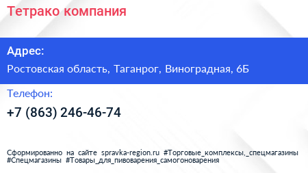 Тетрако, компания по адресу Ростовская область, Таганрог, Виноградная, 6Б в дальнейшем Организация, размещена в следующих категориях: