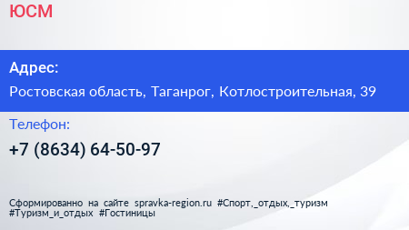 ЮСМ по адресу Ростовская область, Таганрог, Котлостроительная, 39 в дальнейшем Организация, размещена в следующих категориях: