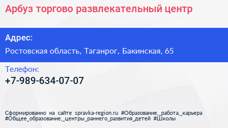Арбуз, торгово-развлекательный центр по адресу Ростовская область, Таганрог, Бакинская, 65 в дальнейшем Организация, размещена в следующих категориях: