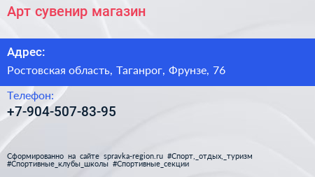 Арт-сувенир, магазин по адресу Ростовская область, Таганрог, Фрунзе, 76 в дальнейшем Организация, размещена в следующих категориях: