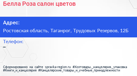 Белла Роза, салон цветов по адресу Ростовская область, Таганрог, Трудовых Резервов, 12Б в дальнейшем Организация, размещена в следующих категориях: