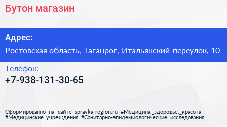 Бутон, магазин по адресу Ростовская область, Таганрог, Итальянский переулок, 10 в дальнейшем Организация, размещена в следующих категориях:
